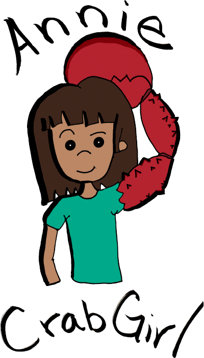 King Crab + Dad. The source of her crab DNA and the only father Annie has ever known. Likes to blow bubbles and scurry around his cage. He is estimated to be 13 years old, which means he has a few years left on his lifespan. While not even remotely aware of what Annie is saying to him, he does come to her claw when she puts it in his cage and finds himself in the role of Annie's confidant more often than not.